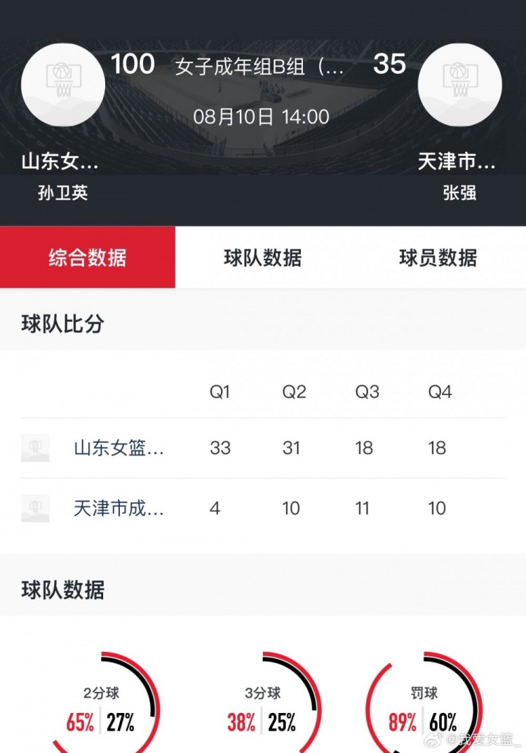 山东队也不遑多让,5名首发球员上场时间都只有10分钟左右,半场打出了64-14的离谱比分,球队12人全部登场,且人人都有得分,几名大学生球员王家绘、邢欣等也得到了不少的上场时间。不得不说,全运会女篮成年组资格赛两极分化严重,实力差距实在太大了!
