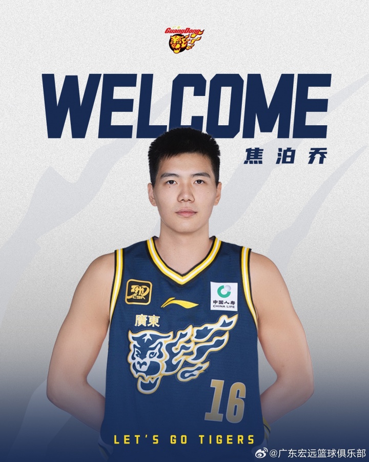 8月29日讯 根据此前的报道,焦泊乔从广州转会加盟至广东男篮。
