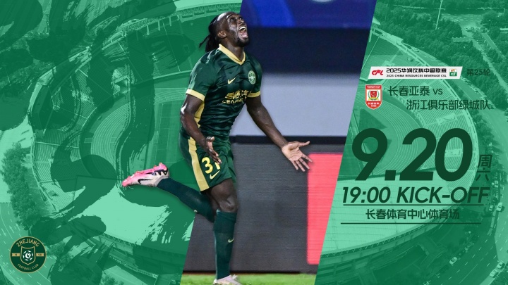 目前中超积分榜上,长春亚泰4胜4平16负积16分,暂列倒数第一;浙江10胜7平7负积37分,位列第6。